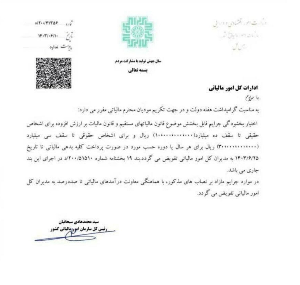 بخشودگی جرایم مالیاتی به مناسبت هفته دولت سال 1403